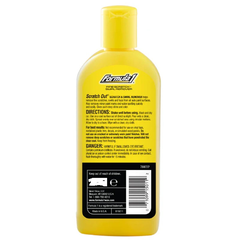 {"id":10190362935428,"title":"Scratch Out® Liquid Micropolisher Removes Fine Scratches Swirls Haze Water Marks","handle":"scratch-out®-liquid-micropolisher-removes-fine-scratches-swirls-haze-water-marks","description":"\u003cp\u003e\u003cstrong\u003e\u003cspan\u003eScratch Out® Liquid - 414ml\u003c\/span\u003e\u003c\/strong\u003e\u003c\/p\u003e\n\u003cp\u003e\u003cspan\u003e\u003cstrong\u003ePart Number: 613831\u003c\/strong\u003e\u003c\/span\u003e\u003c\/p\u003e\n\u003cp\u003e\u003cspan\u003e\u003cstrong\u003eBrand: Formula 1\u003c\/strong\u003e\u003c\/span\u003e\u003c\/p\u003e\n\u003cp\u003e\u003cbr\u003e\u003c\/p\u003e\n\u003cp\u003e\u003cstrong\u003e\u003cem\u003e\u003cspan\u003eCorrection for Light Duty Paint Issues\u003c\/span\u003e\u003c\/em\u003e\u003c\/strong\u003e\u003cspan\u003e\u003c\/span\u003e\u003c\/p\u003e\n\u003cul\u003e\n\u003cli\u003e\u003cspan\u003eUnique micropolishers remove fine scratches, swirls and haze from all auto paint finishes.\u003c\/span\u003e\u003c\/li\u003e\n\u003cli\u003e\u003cspan\u003eRemoves minor paint marks and water spotting quickly and easily.\u003c\/span\u003e\u003c\/li\u003e\n\u003cli\u003e\u003cspan\u003eRestores paint color, making paint finishes look like new.\u003c\/span\u003e\u003c\/li\u003e\n\u003cli\u003e\u003cspan\u003eWon't scratch clear coat paint like conventional rubbing compounds.\u003c\/span\u003e\u003c\/li\u003e\n\u003cli\u003e\u003cspan\u003eExclusive non-abrasive liquid formulation is convenient and easy to use.\u003c\/span\u003e\u003c\/li\u003e\n\u003c\/ul\u003e\n\u003cp\u003e\u003cstrong\u003e\u003cspan\u003eCar Care Tips\u003c\/span\u003e\u003c\/strong\u003e\u003c\/p\u003e\n\u003cp\u003e\u003cspan\u003eFormula 1 Scratch Out has been trusted for over 30 years to remove scratches and restore car finishes. Step 1 is to clean the surface. Formula 1 Wash \u0026amp; Wax is perfect for cleaning and preparing the surface so that loose dirt doesn't create more scratches in your paint finish. Step 2 is to apply Scratch Out to a microfiber cloth and rub into the scratch in a circular motion. Step 3 is flip the cloth to a clean, dry side and buff. Formula 1 Super Shine microfiber is perfect for the job.\u003c\/span\u003e\u003cspan\u003e\u003c\/span\u003e\u003c\/p\u003e\n\u003cp\u003e\u003cstrong\u003e\u003cspan\u003eInstructions\u003c\/span\u003e\u003c\/strong\u003e\u003c\/p\u003e\n\u003cul\u003e\n\u003cli\u003e\u003cspan\u003eSHAKE WELL BEFORE USING.\u003c\/span\u003e\u003c\/li\u003e\n\u003cli\u003e\u003cspan\u003eWash and dry car.\u003c\/span\u003e\u003c\/li\u003e\n\u003cli\u003e\u003cspan\u003eUse on a cool surface out of direct sunlight.\u003c\/span\u003e\u003c\/li\u003e\n\u003cli\u003e\u003cspan\u003ePour onto a clean, dry cloth.\u003c\/span\u003e\u003c\/li\u003e\n\u003cli\u003e\u003cspan\u003eSpread evenly over scratched area using circular motions.\u003c\/span\u003e\u003c\/li\u003e\n\u003cli\u003e\u003cspan\u003eAllow to dry to a haze.\u003c\/span\u003e\u003c\/li\u003e\n\u003cli\u003e\u003cspan\u003eWipe off with a clean, dry cloth.\u003c\/span\u003e\u003c\/li\u003e\n\u003c\/ul\u003e","published_at":"2025-12-18T12:24:28+10:00","created_at":"2025-12-18T12:24:28+10:00","vendor":"HPP","type":"","tags":["Car Grooming"],"price":3000,"price_min":3000,"price_max":3000,"available":true,"price_varies":false,"compare_at_price":3695,"compare_at_price_min":3695,"compare_at_price_max":3695,"compare_at_price_varies":false,"variants":[{"id":51400908472452,"title":"Default Title","option1":"Default Title","option2":null,"option3":null,"sku":"613831","requires_shipping":true,"taxable":true,"featured_image":null,"available":true,"name":"Scratch Out® Liquid Micropolisher Removes Fine Scratches Swirls Haze Water Marks","public_title":null,"options":["Default Title"],"price":3000,"weight":500,"compare_at_price":3695,"inventory_management":"shopify","barcode":"071099138318","requires_selling_plan":false,"selling_plan_allocations":[]}],"images":["\/\/myautosupplies.com.au\/cdn\/shop\/files\/613831.jpg?v=1766024821","\/\/myautosupplies.com.au\/cdn\/shop\/files\/613831_B.jpg?v=1766024821","\/\/myautosupplies.com.au\/cdn\/shop\/files\/613831_A.jpg?v=1766024821","\/\/myautosupplies.com.au\/cdn\/shop\/files\/613831_C.jpg?v=1766024821","\/\/myautosupplies.com.au\/cdn\/shop\/files\/613831_D.jpg?v=1766024821","\/\/myautosupplies.com.au\/cdn\/shop\/files\/615011.jpg?v=1766024821","\/\/myautosupplies.com.au\/cdn\/shop\/files\/Formula1_4ce46572-4b29-47c9-a1f4-4c7bb6bb99bb.jpg?v=1766024821"],"featured_image":"\/\/myautosupplies.com.au\/cdn\/shop\/files\/613831.jpg?v=1766024821","options":["Title"],"media":[{"alt":null,"id":51200046432388,"position":1,"preview_image":{"aspect_ratio":1.003,"height":798,"width":800,"src":"\/\/myautosupplies.com.au\/cdn\/shop\/files\/613831.jpg?v=1766024821"},"aspect_ratio":1.003,"height":798,"media_type":"image","src":"\/\/myautosupplies.com.au\/cdn\/shop\/files\/613831.jpg?v=1766024821","width":800},{"alt":null,"id":51200046563460,"position":2,"preview_image":{"aspect_ratio":1.0,"height":800,"width":800,"src":"\/\/myautosupplies.com.au\/cdn\/shop\/files\/613831_B.jpg?v=1766024821"},"aspect_ratio":1.0,"height":800,"media_type":"image","src":"\/\/myautosupplies.com.au\/cdn\/shop\/files\/613831_B.jpg?v=1766024821","width":800},{"alt":null,"id":51200046465156,"position":3,"preview_image":{"aspect_ratio":1.0,"height":800,"width":800,"src":"\/\/myautosupplies.com.au\/cdn\/shop\/files\/613831_A.jpg?v=1766024821"},"aspect_ratio":1.0,"height":800,"media_type":"image","src":"\/\/myautosupplies.com.au\/cdn\/shop\/files\/613831_A.jpg?v=1766024821","width":800},{"alt":null,"id":51200046399620,"position":4,"preview_image":{"aspect_ratio":1.0,"height":800,"width":800,"src":"\/\/myautosupplies.com.au\/cdn\/shop\/files\/613831_C.jpg?v=1766024821"},"aspect_ratio":1.0,"height":800,"media_type":"image","src":"\/\/myautosupplies.com.au\/cdn\/shop\/files\/613831_C.jpg?v=1766024821","width":800},{"alt":null,"id":51200046596228,"position":5,"preview_im