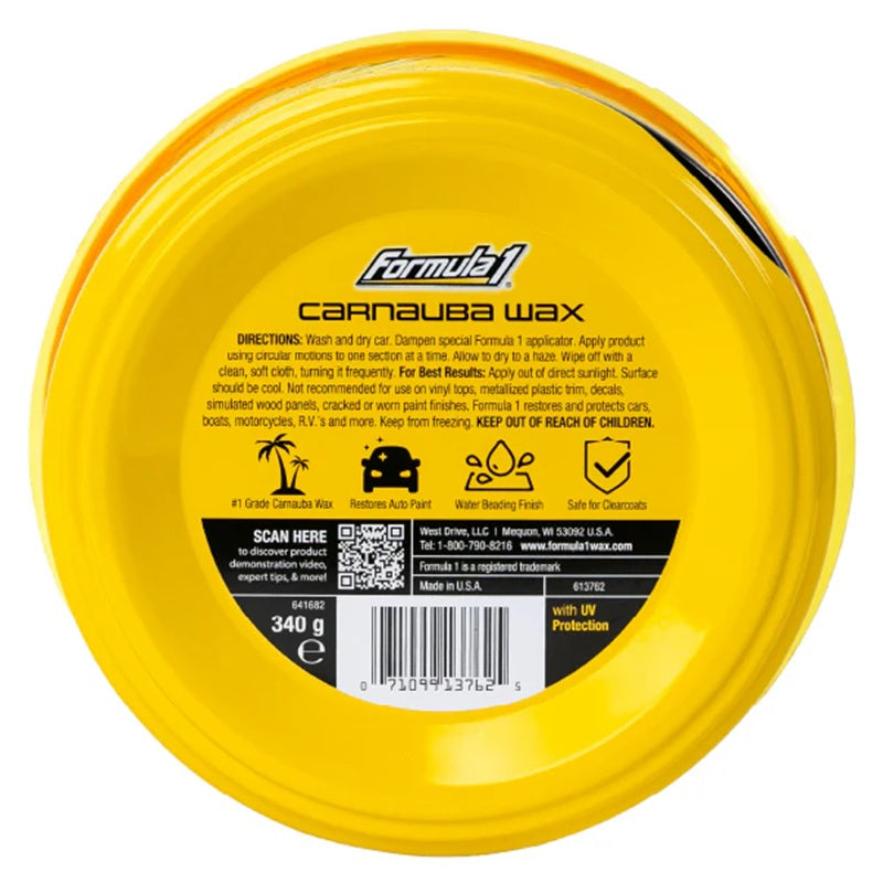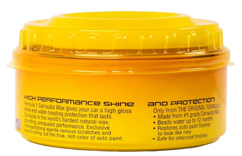 {"id":7142118621316,"title":"Carnauba Wax 340g #1 Grade Brazilian Carnauba Wax for Extended High-Gloss Shine","handle":"copy-of-formula-1-carnauba-paste-wax-230g-shines-protects-reveals-your-cars-true-colour","description":"\u003cp data-mce-fragment=\"1\"\u003e\u003cstrong\u003eCarnauba Paste Wax - 12 oz \/ 340gm\u003c\/strong\u003e\u003c\/p\u003e\n\u003cp data-mce-fragment=\"1\"\u003eSKU: 613762\u003c\/p\u003e\n\u003cp data-mce-fragment=\"1\"\u003eShines, Protects and Reveals Your Car's True Paint Color!\u003c\/p\u003e\n\u003cp data-mce-fragment=\"1\"\u003eFormula 1 uses the Number 1 Grade Carnauba Wax which is a natural product sourced from a Brazilian Palm Tree. It is absolutely suitable for Clear Coat paint and provides the best protection for the exterior of the car.\u003c\/p\u003e\n\u003cul data-mce-fragment=\"1\"\u003e\n\u003cli data-mce-fragment=\"1\"\u003e#1 Grade Brazilian Carnauba Wax for extended high-gloss shine\u003c\/li\u003e\n\u003cli data-mce-fragment=\"1\"\u003eAdvanced micro-polishing technology removes minor scratches and haze, revealing the true, rich color of auto paint\u003c\/li\u003e\n\u003cli data-mce-fragment=\"1\"\u003eThick, paste formula for concentrated application\u003c\/li\u003e\n\u003cli data-mce-fragment=\"1\"\u003eFoam applicator included\u003c\/li\u003e\n\u003cli data-mce-fragment=\"1\"\u003eGoes on fast; wipes off easily\u003c\/li\u003e\n\u003c\/ul\u003e\n\u003cp\u003e\u003cstrong\u003eCar Care Tips:\u003c\/strong\u003e\u003c\/p\u003e\n\u003cp\u003eAlways thoroughly wet, wash and dry your car before applying any wax product.\u003c\/p\u003e\n\u003cp\u003eWe recommend using Formula 1 Wash and Wax to clean your car prior to waxing.\u003c\/p\u003e\n\u003cp\u003eIf bugs, tar or dirt are an issue, trust Formula 1 Bug \u0026amp; Tar Remover for a deep clean against tough buildup.\u003c\/p\u003e\n\u003cp\u003eFor alternative, easy wax application, we recommend the Formula 1 Super Pads.\u003c\/p\u003e\n\u003cp\u003eTo remove wax, try the Formula 1 Super Shine Microfiber Polishing Towels.\u003c\/p\u003e\n\u003cp\u003e\u003cstrong\u003eInstructions:\u003c\/strong\u003e\u003c\/p\u003e\n\u003col\u003e\n\u003cli\u003eWash and dry car.\u003c\/li\u003e\n\u003cli\u003eDampen Formula 1 foam applicator or Formula 1 Super Pads.\u003c\/li\u003e\n\u003cli\u003eApply product using circular motions, one three-foot section at a time.\u003c\/li\u003e\n\u003cli\u003eAllow to dry.\u003c\/li\u003e\n\u003cli\u003eWipe off with a clean, soft cloth, rotating frequently.\u003c\/li\u003e\n\u003c\/ol\u003e\n\u003cp data-mce-fragment=\"1\"\u003e\u003cbr\u003e\u003c\/p\u003e","published_at":"2023-07-26T11:29:15+10:00","created_at":"2023-07-26T11:29:15+10:00","vendor":"HPP","type":"","tags":["Car Grooming"],"price":3400,"price_min":3400,"price_max":3400,"available":true,"price_varies":false,"compare_at_price":3995,"compare_at_price_min":3995,"compare_at_price_max":3995,"compare_at_price_varies":false,"variants":[{"id":41530771341444,"title":"Default Title","option1":"Default Title","option2":null,"option3":null,"sku":"613762","requires_shipping":true,"taxable":true,"featured_image":null,"available":true,"name":"Carnauba Wax 340g #1 Grade Brazilian Carnauba Wax for Extended High-Gloss Shine","public_title":null,"options":["Default Title"],"price":3400,"weight":500,"compare_at_price":3995,"inventory_management":"shopify","barcode":"071099137625","requires_selling_plan":false,"selling_plan_allocations":[]}],"images":["\/\/myautosupplies.com.au\/cdn\/shop\/files\/613762_D.jpg?v=1766022077","\/\/myautosupplies.com.au\/cdn\/shop\/files\/613762_A.jpg?v=1766022077","\/\/myautosupplies.com.au\/cdn\/shop\/files\/613762_B.jpg?v=1766022077","\/\/myautosupplies.com.au\/cdn\/shop\/files\/613762_C.jpg?v=1766022077","\/\/myautosupplies.com.au\/cdn\/shop\/files\/613762.jpg?v=1766022077","\/\/myautosupplies.com.au\/cdn\/shop\/files\/613762_E.jpg?v=1766022077","\/\/myautosupplies.com.au\/cdn\/shop\/files\/Formula1_a3815d61-dfdb-4c25-bdc4-62f51f9618fa.jpg?v=1766022077"],"featured_image":"\/\/myautosupplies.com.au\/cdn\/shop\/files\/613762_D.jpg?v=1766022077","options":["Title"],"media":[{"alt":null,"id":51199894847620,"position":1,"preview_image":{"aspect_ratio":1.0,"height":800,"width":800,"src":"\/\/myautosupplies.com.au\/cdn\/shop\/files\/613762_D.jpg?v=1766022077"},"aspect_ratio":1.0,"height":800,"media_type":"image","src":"\/\/myautosupplies.com.au\/cdn\/shop\/files\/613762_D.jpg?v=1766022077","width":800},{"alt":null,"id":51199894716548,"position":2,"preview_image":{"aspect_ratio":1.455,"height":600,"width":873,"src":"\/\/myautosupplies.com.au\/cdn\/shop\/files\/613762_A.jpg?v=1766022077"},"aspect_ratio":1.455,"height":600,"media_type":"image","src":"\/\/myautosupplies.com.au\/cdn\/shop\/files\/613762_A.jpg?v=1766022077","width":873},{"alt":null,"id":51199894749316,"position":3,"preview_image":{"aspect_ratio":1.552,"height":600,"width":931,"src":"\/\/myautosupplies.com.au\/cdn\/shop\/files\/613762_B.jpg?v=1766022077"},"aspect_ratio":1.552,"height":600,"media_type":"image","src":"\/\/myautosupplies.com.au\/cdn\/shop\/files\/613762_B.jpg?v=1766022077","width":931},{"alt":null,"id":51199894814852,"position":4,"preview_image":{"aspect_ratio":1.0,"height":800,"width":800,"src":"\/\/myautosupplies.com.au\/cdn\/shop\/files\/613762_C.jpg?v=1766022077"},"aspect_ratio":1.0,"height":800,"media_type":"image","src":"\/\/myautosupplies.com.au\/cdn\/shop\/files\/613762_C.jpg?v=1766022077","width":800},{"alt":null,"id":25363696648324,"position":5,"preview_image":{"aspect_ratio":1.0,"height":800,"width":800,"src":"\/\/myautosupplies.com.au\/cdn\/shop\/files\/613762.jpg?v=1766022077"},"aspect_ratio":1.0,"height":800,"media_type":"image","src":"\/\/myautosupplies.com.au\/cdn\/shop\/files\/613762.jpg?v=1766022077","width":800},{"alt":null,"id":51199894782084,"position":6,"preview_image":{"aspect_ratio":1.0,"height":800,"width":800,"src":"\/\/myautosupplies.com.au\/cdn\/shop\/files\/613762_E.jpg?v=1766022077"},"aspect_rati