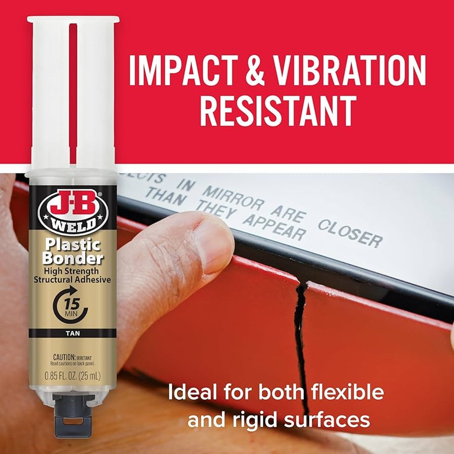 JB Weld PLASTIC BONDER Urethane Adhesive 2 Part Glue Quick Set 25ml Cures TAN